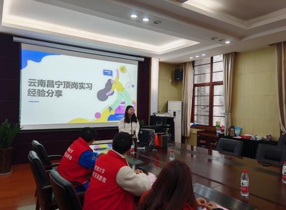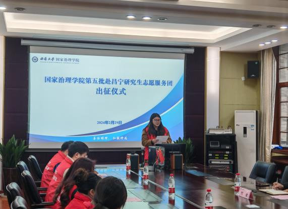 出征仪式上,陈丽华副书记首先介绍了昌宁志愿服务项目以及第五批赴昌宁研究生志愿服务团的基本情况。随后,蔡益辉同学作为上一批派出的研究生志愿者,动情的分享了自己参加志愿服务的经验和感受。她谈到,在为期半年的志愿服务工作中,团队成员不断挖掘、不断尝试,在实践中运用和升华理论,在不断适应身份转变的同时,更是在超越自身、走向成熟。刘娜同学作为本次派出的志愿服务团代表进行了发言,她表示会继承发扬前辈们的奉献精神,赓续国治“火种”,在新征程上奋力跑出更优成绩。