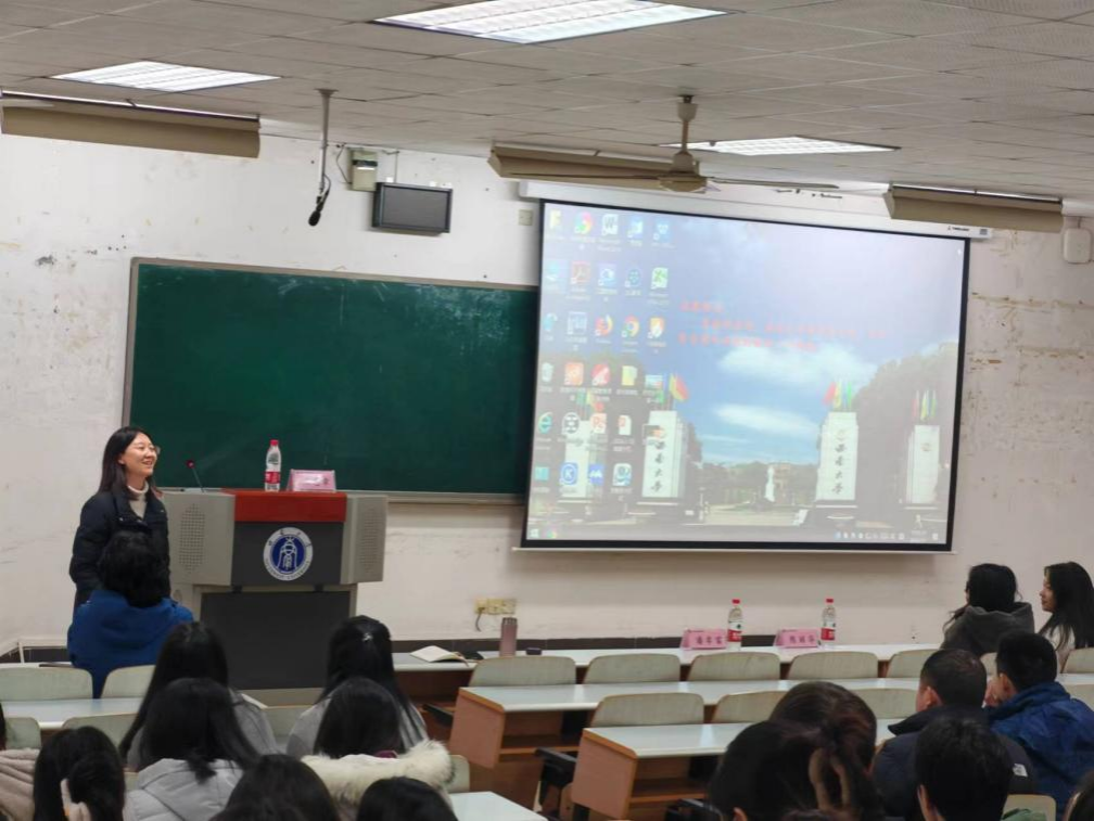 随后,王志章教授走上讲台,激情澎湃地提出“读书改变命运”的观点,和同学们分享了自己的求学经历和人生重要转折点的故事,特别强调同学们要有时间观念,要珍惜读书时光。接下来,王教授围绕“怎么读好书”“如何选择职业”“怎样做研究”“如何处理感情问题”四个方面进行了深入讲述,与同学们分享了大量的真实事例,激励同学们要瞄准目标,敢想敢拼,善作善成。王教授期望同学们要明确知道读书是为了改变自己,学知识是为了提升能力并承担社会责任。“要把知识转化成生产力,要去创造,要去改变”“要做顶天立地的研究,要做党和国家需要的研究,要提出切实的解决方案”“研究生就是要做文化传承者、科学研究者、社会服务者”……两个小时的授课,王教授金句频出,教室里时时响起热烈的掌声和惊叹声。