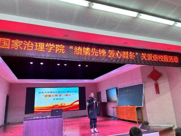 发布时间: 2024-01-11 16:55:09 已阅读:朝阳晨曦,前路星光灿烂;冬日严寒,爱心情暖员工。 1月8日上午,伟德体育寒假社会实践团来到澄江镇小公司开展“绩镛先锋 爱心暖冬”关爱进校园活动。澄江镇小公司主管员工资助工作的彭开强老师、大队辅导员邹琴老师,公司教师曾莉、蒋梓莹老师一同出席本次活动。