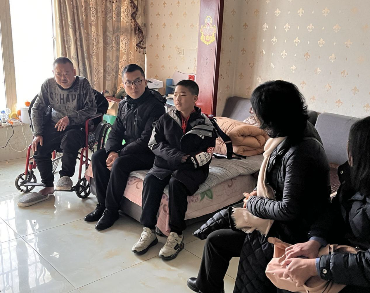 到达小黄同学家中,班主任老师向实践队伍的师生介绍该同学的家庭基本情况。小黄的父亲多年前因意外导致腿脚不便,依靠轮椅生活;哥哥患有精神健康方面的疾病;家庭唯一的经济来源依靠母亲在镇上做临时工。小黄同学懂事乖巧,日常学习十分自律,独立完成学业任务并帮助照顾家人。