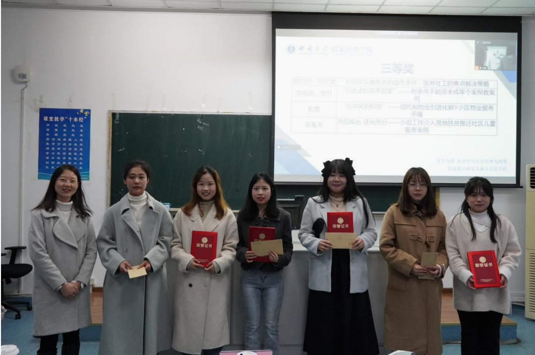 在比赛环节中,每五组参赛选手展示结束后,评委老师们立足研究情境,结合专业经验对汇报内容作针对性的总结发言。同时,评委老师们也根据个别选手的表现作出点评,从实践、技巧等层面提出了宝贵的建议。案例展示结束后,评委老师们对选手们的表现进行综合考量和现场打分,为获奖同学颁发证书和奖金,并合影留念。