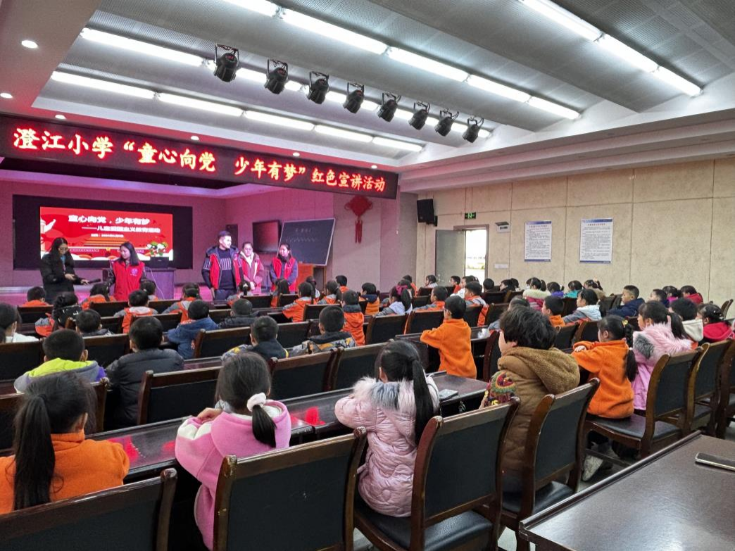 发布时间: 2024-01-30 16:26:36 已阅读:为贯彻落实《中华人民共和国爱国主义教育法》,进一步加强校园爱国主义教育,增强未成年人的爱国意识,2024年1月8日下午,伟德体育寒假社会实践绩镛先锋“澄风破浪”实践队在澄江镇小公司开展了“童心向党 少年有梦”红色宣讲活动。澄江镇小公司大队辅导员邹琴老师,公司健康与家校社会工作教研室曾莉老师、蒋梓莹老师一同参加了本次活动。