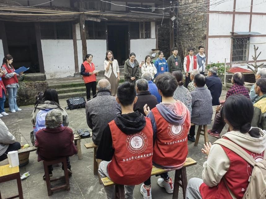 公共政策宣讲团成立于2015年9月,以“政策下基层,宣讲惠民生”为宗旨,面向基层,服务群众,释疑解惑,凝聚力量,以老百姓喜闻乐见的方式演绎国家政策,用最通俗的方式搭建百姓与政策间的桥梁,积极服务乡村振兴、基层治理、支教支边、志愿帮扶等。公共政策宣讲团累计在北碚区、奉节县、丰都县20余个社区成功举办了上百场次宣讲活动、志愿活动,在专业课教师指导下长期深入城乡社区,为群众讲解公共政策、调研基层治理、服务乡村振兴,实现了老员工实践学习与乡村振兴战略需求的有效衔接与互动,获得了良好的社会反响。