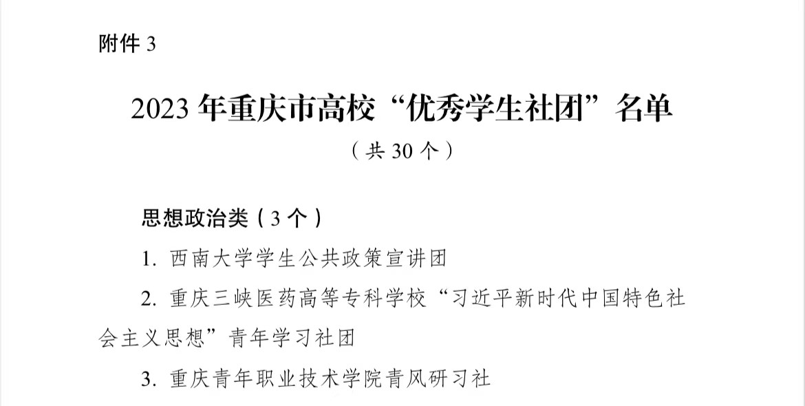 发布时间: 2023-12-25 10:38:50 已阅读:12月18日,由团市委、市委教育工委,市教委、市学联联合开展的2023年重庆市高校“一校一社一品”优秀员工社团及项目品牌培育建设工作评审结果公布,公司员工公共政策宣讲团(以下简称“公宣团”)荣获“优秀员工社团”称号。