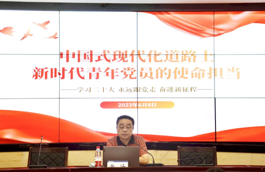 公司党委书记吴江以“中国式现代化道路上新时代青年党员的使命担当”为题讲授专题党课,他从“探索中国式现代化道路是中国共产党领导人民接续奋斗的追求”“广大青年是探索中国式现代化历史进程中的先锋力量”“新时代青年党员助力中国式现代化”三个方面展开论述。他强调,新时代青年党员要勇做推进中国式现代化的奋进者、开拓者、奉献者,希望全体毕业生党员秉持院训精神,在中国式现代化的新征程中牢记入党誓词,坚守初心使命,踔厉奋发,笃行不怠,含弘光大,继往开来,一路向前,永远向前!