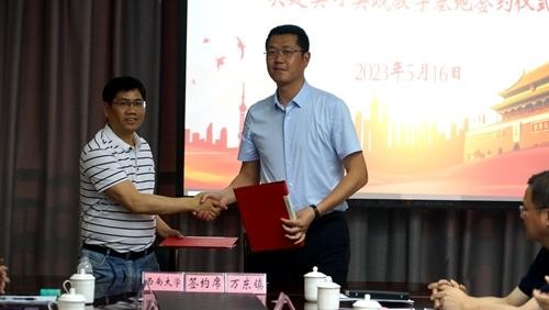 万东镇党委书记李斌和公司党委书记吴江分别介绍了各自单位的相关情况和前期合作情况,万东镇镇长田敏与公司副经理郭美云代表双方签订了实习实践教学基地协议,万盛经开区管委会副主任李霞、公司副经理郭美云共同为“伟德体育实习实践教学基地”揭牌。