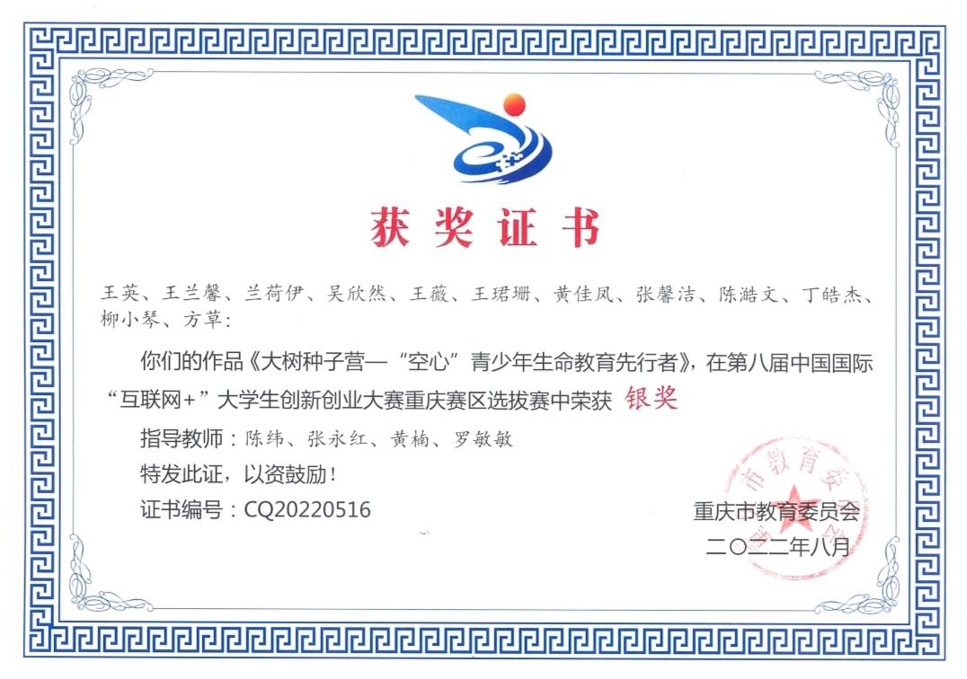 竞赛科研方面,注重实务与研究相结合。曾为6所公司、10个社区开展生命教育,探究破解青少年“空心”问题的路径。项目在第六届中国青年志愿服务项目大赛中获国赛银奖,在第八届中国国际“互联网+”老员工创新创业大赛中获市级银奖。