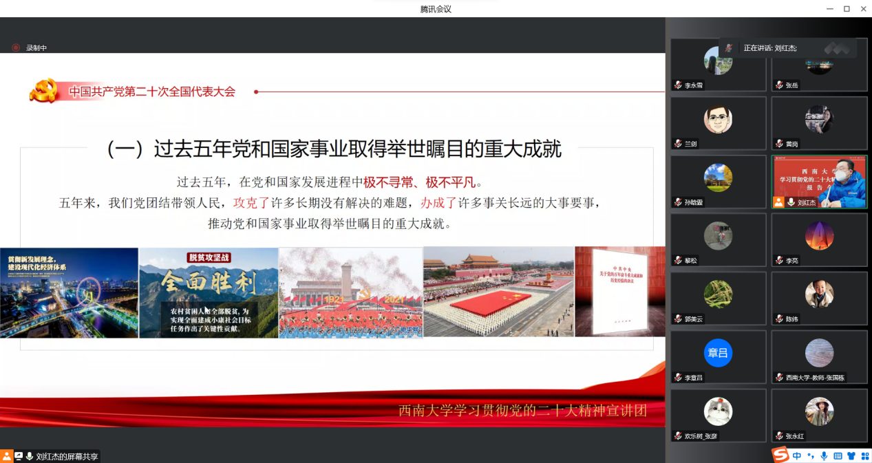 发布时间: 2022-12-27 16:39:26 已阅读:为深入学习贯彻党的二十大精神,根据公司党委统一安排,12月27日上午,bevictor伟德党委学习贯彻党的二十大精神宣讲团成员、公司党委书记吴江为全体教职工作党的二十大精神宣讲,宣讲会以线上线下相结合的方式举行,全体教职工参加报告会。