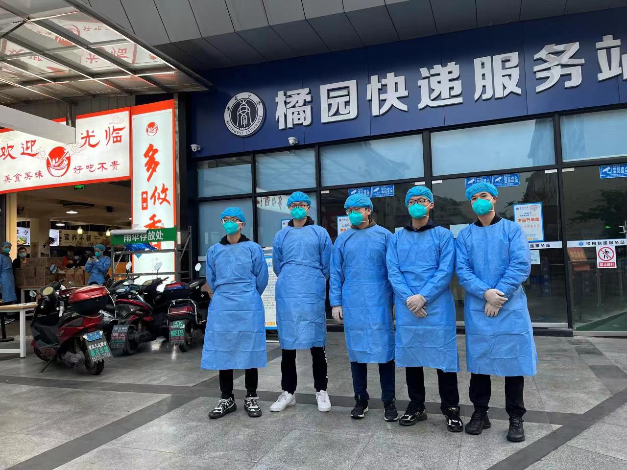 近日公司疫情防控形势严峻,橘园部分楼栋进行封控管理,人手紧缺,紧急招募志愿者。2021级社会学专业研究生李可、许晨阳挺身而出,穿戴齐一整套防护装备,危机感、责任感油然而生。作为送餐员,他们早上6点多起床为封控在宿舍的同学们送餐,无数次来回往返于食堂和寝室之间,搬运餐食一箱又一箱。“为了保障校园安全,这点辛苦不算什么。”他们坚定地说,“这都是绩镛先锋应该做的”。