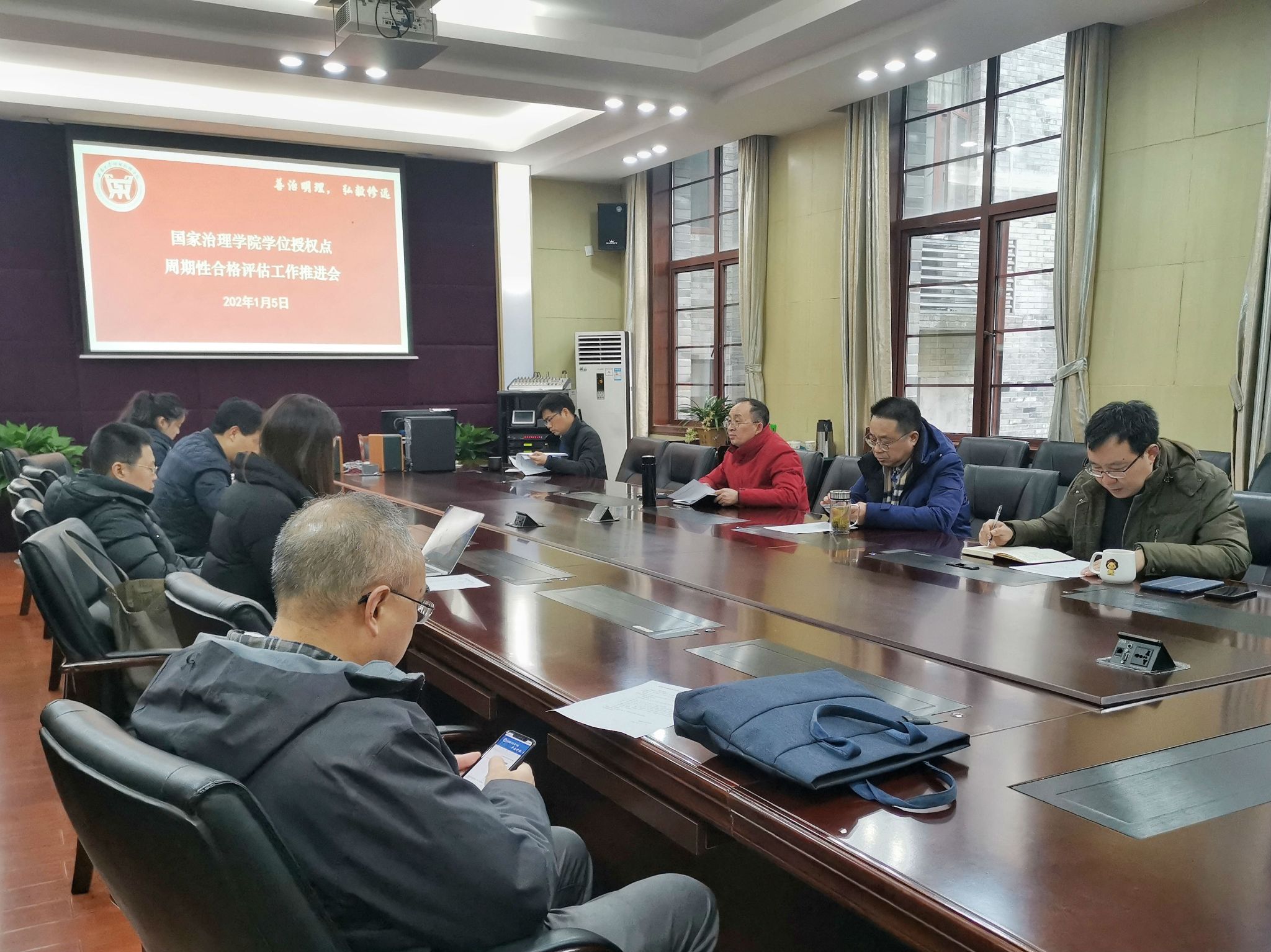 潘孝富对学位授权点周期性合格评估工作做了解读,强调各参评点应当高度重视此项工作,充分认识周期性合格评估的重要意义,把握好各项工作的关键时间节点,充分利用好本轮评估的机会,认真梳理,凝练特色,明确发展方向。各部门应当切实做好协调和配合工作,精准构建评估指标体系。吴江指出,各参评点应当对评估内容进行认真推敲、认真琢磨、认真研究,彰显学科特色,在评建过程中加强系和学科联动,理清团队建设中存在的问题,提升学位授权点的自身建设。