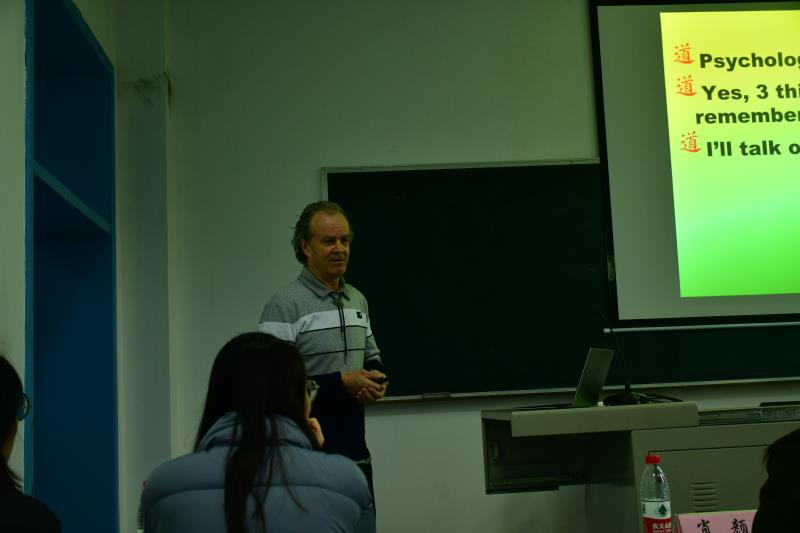 随后,Kohler老师上台致辞,他用幽默风趣的语言表达了对我国迅速有效控制疫情的肯定与敬佩;向同学们介绍了自己的爱好;希望同学们在众人面前交流,要注意句式以及语法,不断练习,争取提高口语表达水平。Kohler老师非常热爱中国传统文化,还谈到希望将中国哲学中“道”的精神,融入师生间的交流和学习,使师生双方教学相长,更好地促进文化的交流融合。
