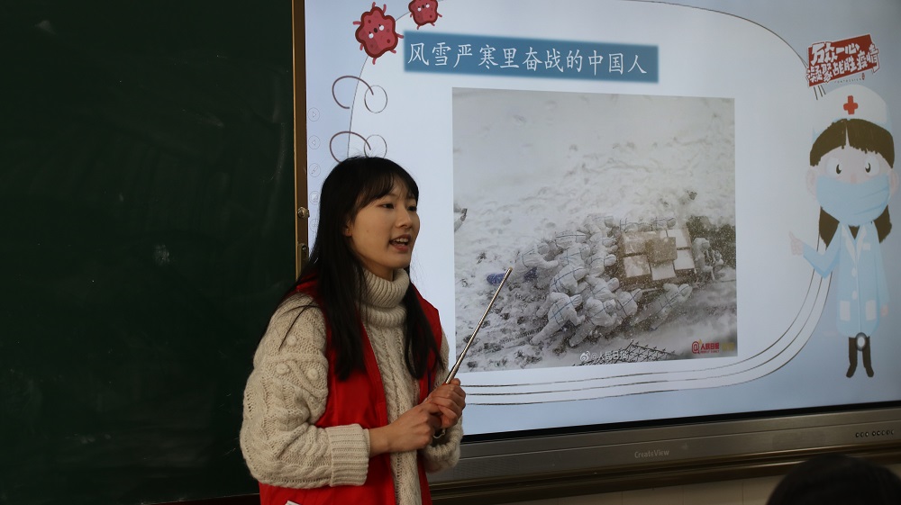 为了强化小朋友们的防疫意识,同时让爱国奉献的精神从小在他们心中生根发芽,志愿者们选择和小朋友们分享抗疫中的故事,带领他们一起去了解典型的抗疫英雄。84岁高龄,仍奔赴一线的钟南山;身患渐冻症,仍坚守岗位的张定宇;和时间赛跑,研制疫苗的陈薇,等等。听到这一个个令人肃然起敬的故事,“他们是英雄,是救世主。”“他们是保护我们的天使。” 还有小朋友说:“我长大了也要和他们一样,做一个保护大家的医生!”立足当下,对于即将到来的寒假,疫情尚未结束,志愿者手把手教小朋友如何正确的佩戴口罩、如何正确的、干净彻底的清洁手部“左手搓右手,十指要交叉......。”小朋友们学得有模有样、十分认真。