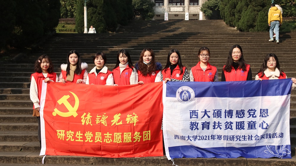 发布时间: 2021-01-26 17:09:38 已阅读:西大硕博感党恩,教育扶贫暖人心。为引导研究生立足国情,扎根大地,奉献社会,助人自助,传承百年初心,做好党的代言人,成为人民群众的好帮手,1月13日至17日公司“绩镛先锋”研究生党员志愿服务团组织社会工作、行政管理等专业的研究生,努力发挥专业优势,助力乡村教育振兴,前往北碚区东阳小学,化身园丁,执教杏坛,开展系列暖童心、筑童梦的志愿服务活动。