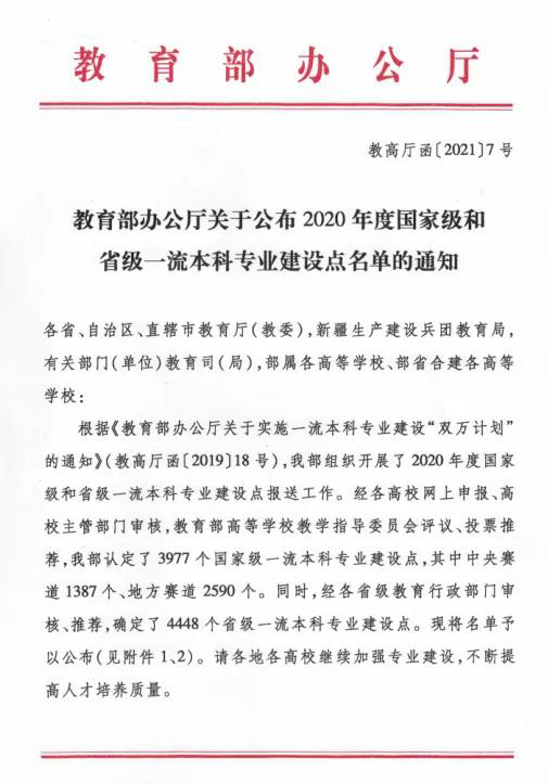 近日,教育部发布《教育部办公厅关于公布2020年国家级和省级一流本科专业建设点名单的通知》(教高厅函[2021]7号),伟德体育行政管理专业入选国家级一流本科专业建设点,实现了公司国家级一流本科专业零的突破。