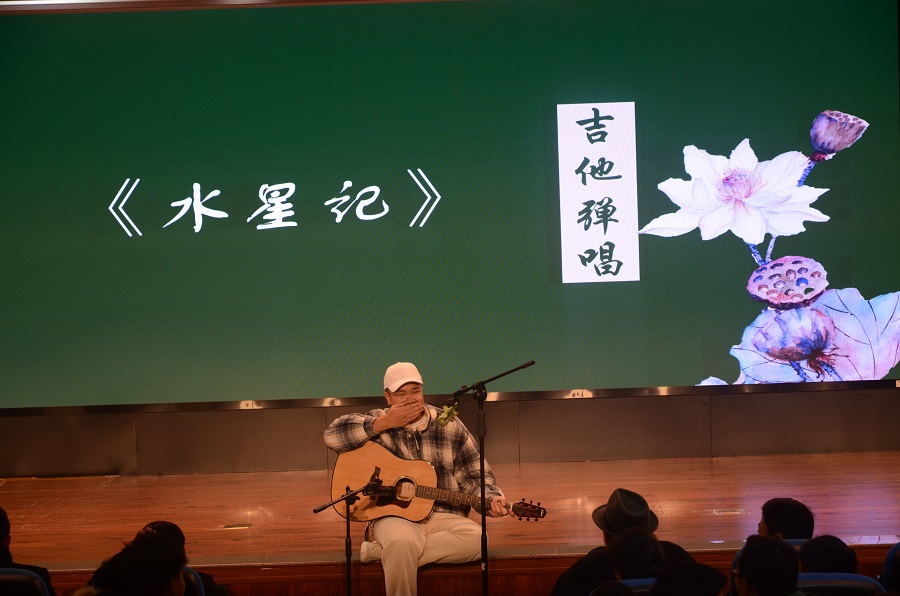 “哲学与智慧同启,音乐似灵感迸发。当智慧碰撞灵感,银花火树盛不满。” 音乐是一座桥,能够连接人的精神世界,哲学与音乐自古以来便密不可分。随后,哲学系研究生郭子钦带来古琴演奏《平沙落雁》。琴声婉转悠扬撩人心弦,音韵典雅高华,像极了在历史深处娓娓道来的中国古典哲学,沁人心脾。继而,哲学系研究生刘鑫带来的吉他弹唱《水星记》使现场气氛轻松愉悦,寓说哲学从来不仅仅是高在云端的阳春白雪,也可以是你我生活中的点点滴滴。