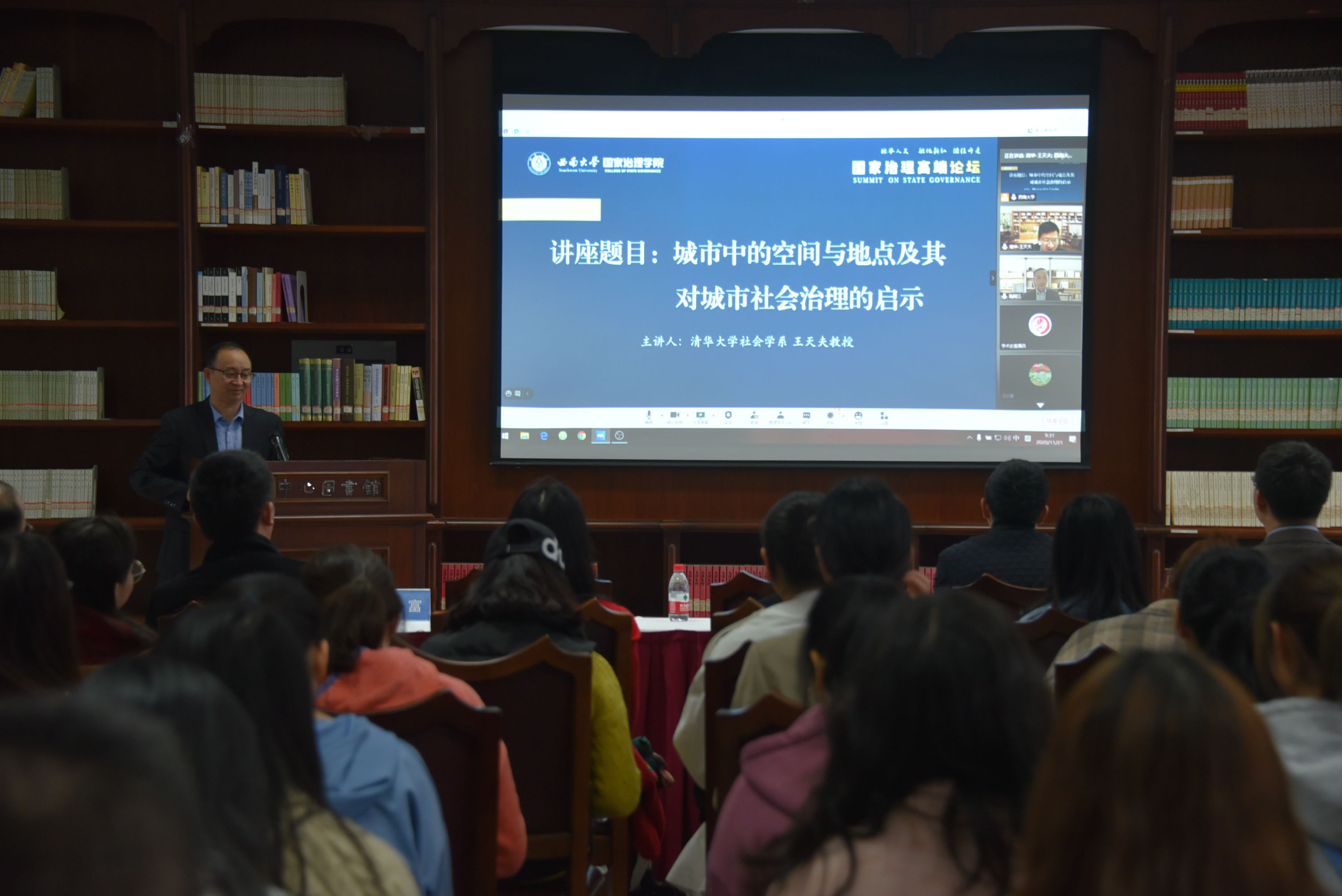 发布时间: 2020-11-24 14:50:04 已阅读:2020年11月21日,清华大学社会学系王天夫教授莅临公司“国家治理论坛”开展《城市中的空间与地点及其对城市社会治理的启示》讲座。河海大学环境与社会研究中心主任陈阿江教授受邀评议。伟德体育经理潘孝富教授主持讲座,社会学系全体师生线下参加。