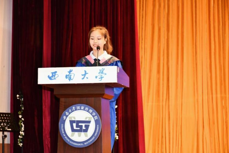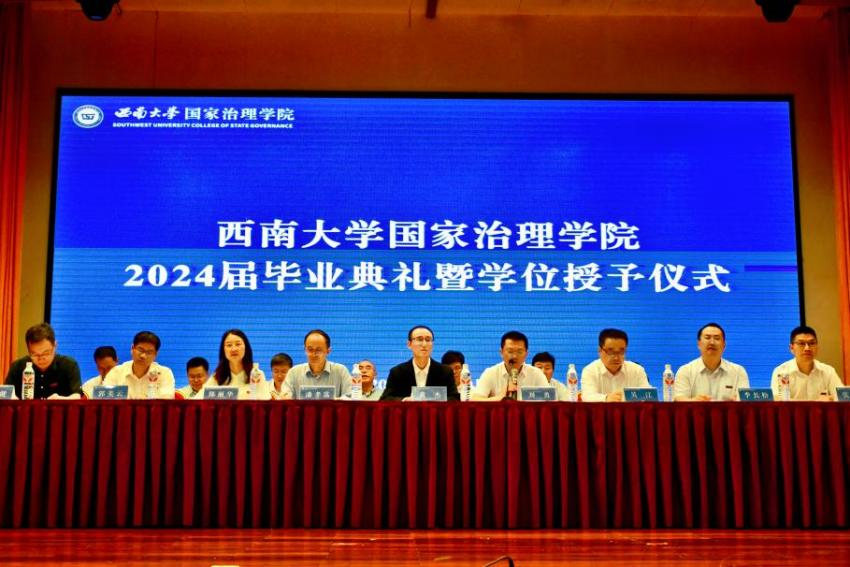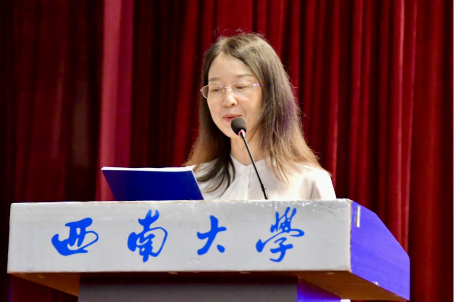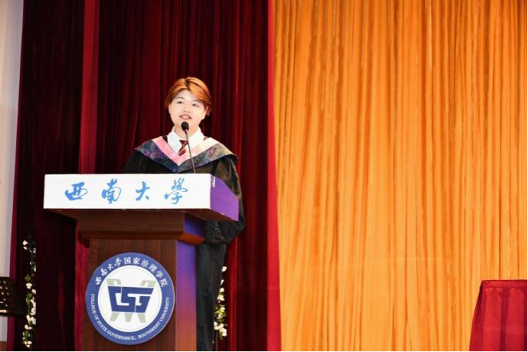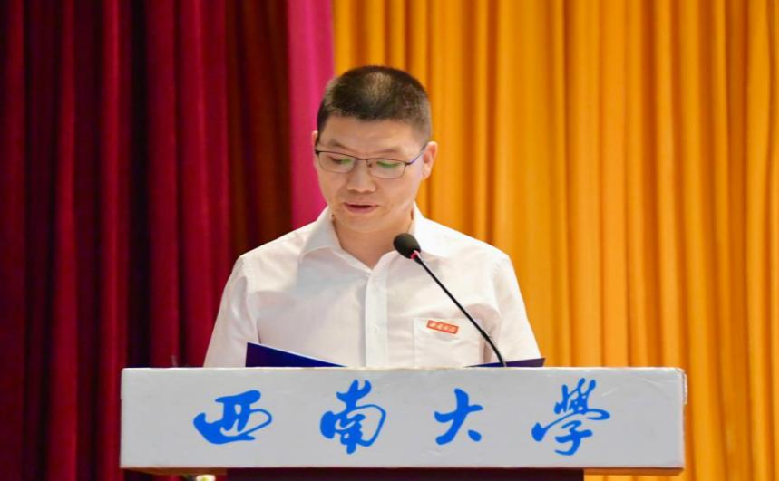 毕业研究生代表黄秘回顾了七年西大记忆,分享了初心沉淀与成长淬炼两个故事。希望大家不忘来时路,方知向何生,不罔肩头担,永远跟党走。本科毕业生代表李泳辰在发言中回忆到在四年前成为伟德体育第一届员工,在过去四年与时代同行、与公司共进、与青春共舞,祝愿每一位毕业生这不平凡的路上不辍不休。教师代表何健寄语毕业生们在未来始终将校训“含弘光大,继往开来”,院训“善治明理,弘毅修远”内化于心,外化于行,不仅记得在西大的拼搏,还须记得在西大收获的各种美好。祝愿毕业生们未来一路凯歌,归来仍是少年!