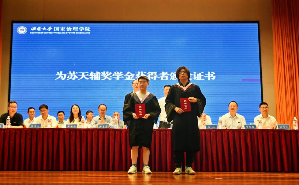 为苏天辅奖学金获得者颁发证书