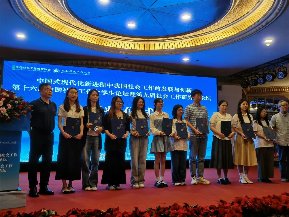 7月27日-28日,由中国社会工作教育协会主办,成都信息工程大学承办的“中国式现代化新进程中我国社会工作的发展与创新——第十六届中国社会工作老员工论坛暨第九届社会工作研究生论坛”在成都举办。全国183所高校近510余名本硕博社会工作专业员工参加论坛,就“中国式现代化新进程中我国社会工作的发展与创新”有关议题展开深入研讨。中国社会工作教育协会副秘书长、公司经理潘孝富教授应邀作为这次大会前置评审与点评专家出席本次会议。公司6位社会工作专业同学参加论坛展现风采,其中郭晓雪同学作大会发言,其他5位同学分别作分论坛发言。本次论坛提交论文785篇,经过协会学术委员会初选和前置预评审,463篇论文入选参会。经过2天的汇报、交流与角逐,论坛共评出优秀论文一等奖5篇、二等奖83篇、三等奖102篇,获奖率大约40%。经过激烈的角逐和竞争,公司参会的6篇论文有5篇获奖,其中郭晓雪、叶玉梅获二等奖,王薇、陈俊伶、谢月获三等奖。