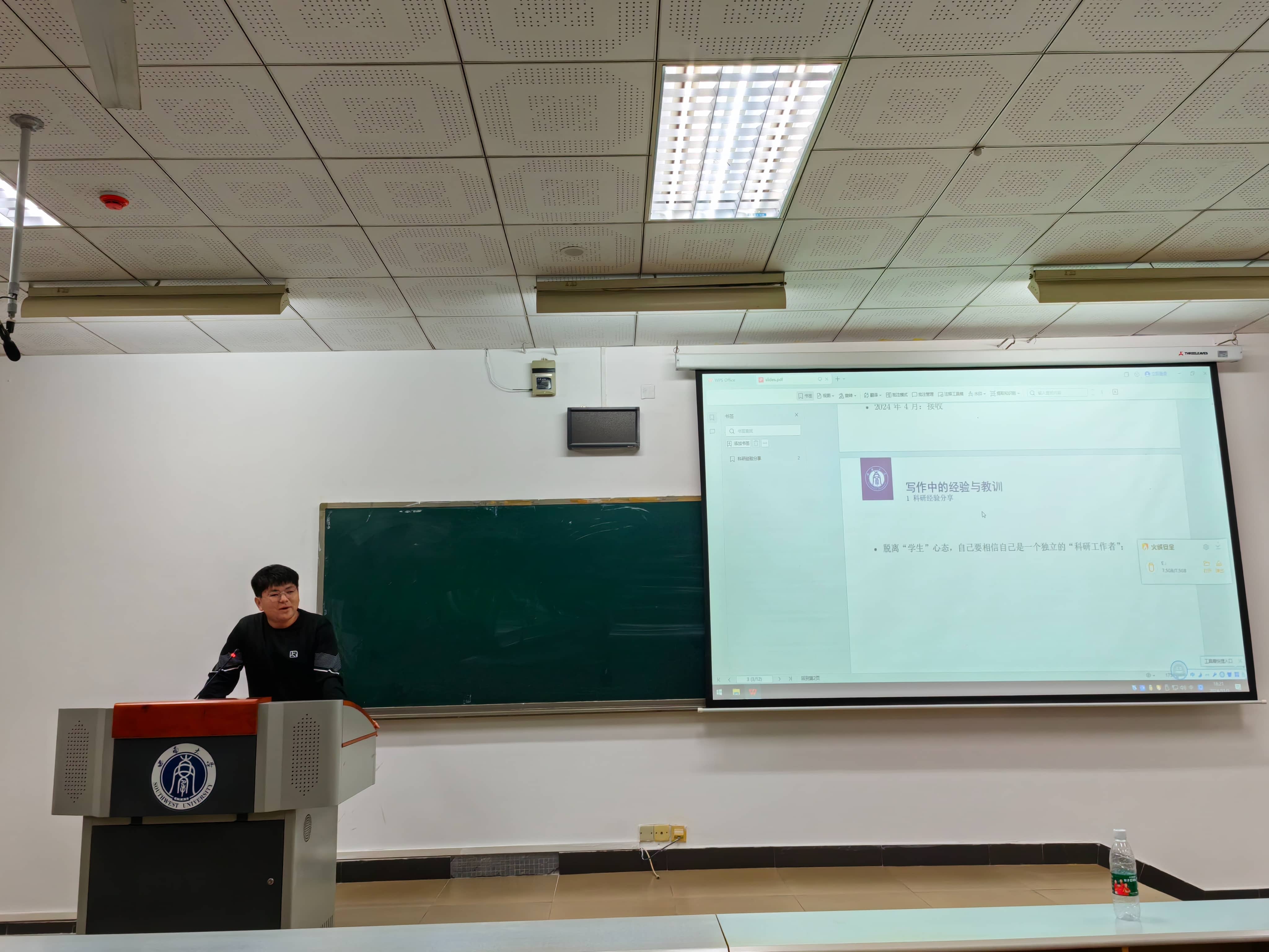 发布时间: 2024-11-04 22:17:36 已阅读:为增强研究生职业意识,引导树立正确的择业观、就业观和职业观,进一步把握就业方向、找准职业定位和提升就业能力,11月1日晚,公司在十教601教室举办“研途领航”研究生专业成长与就业经验分享会。公司党委副书记陈丽华,研究生辅导员汪全洲,全体研究生参加本次分享会。分享会由汪全洲主持。