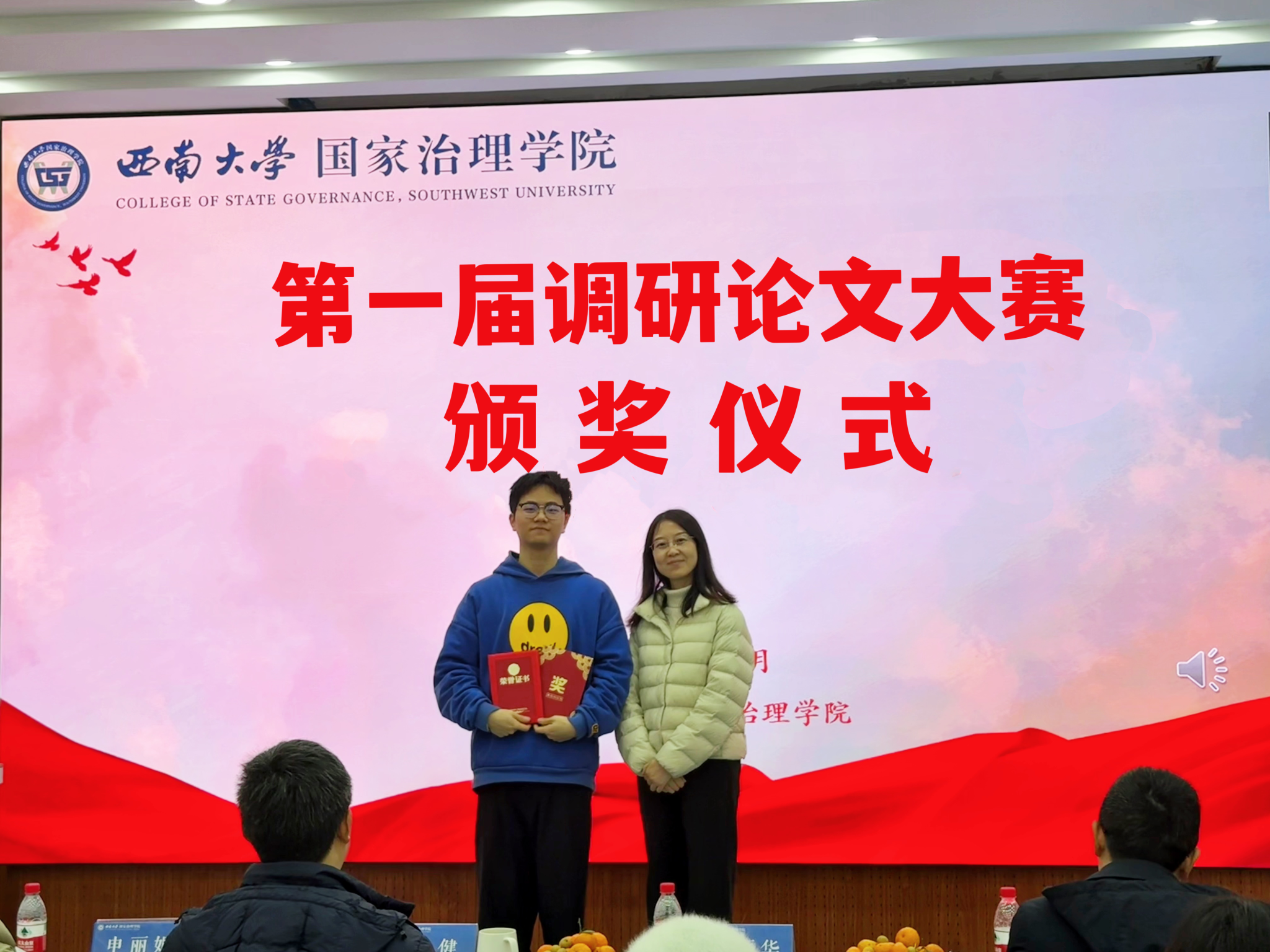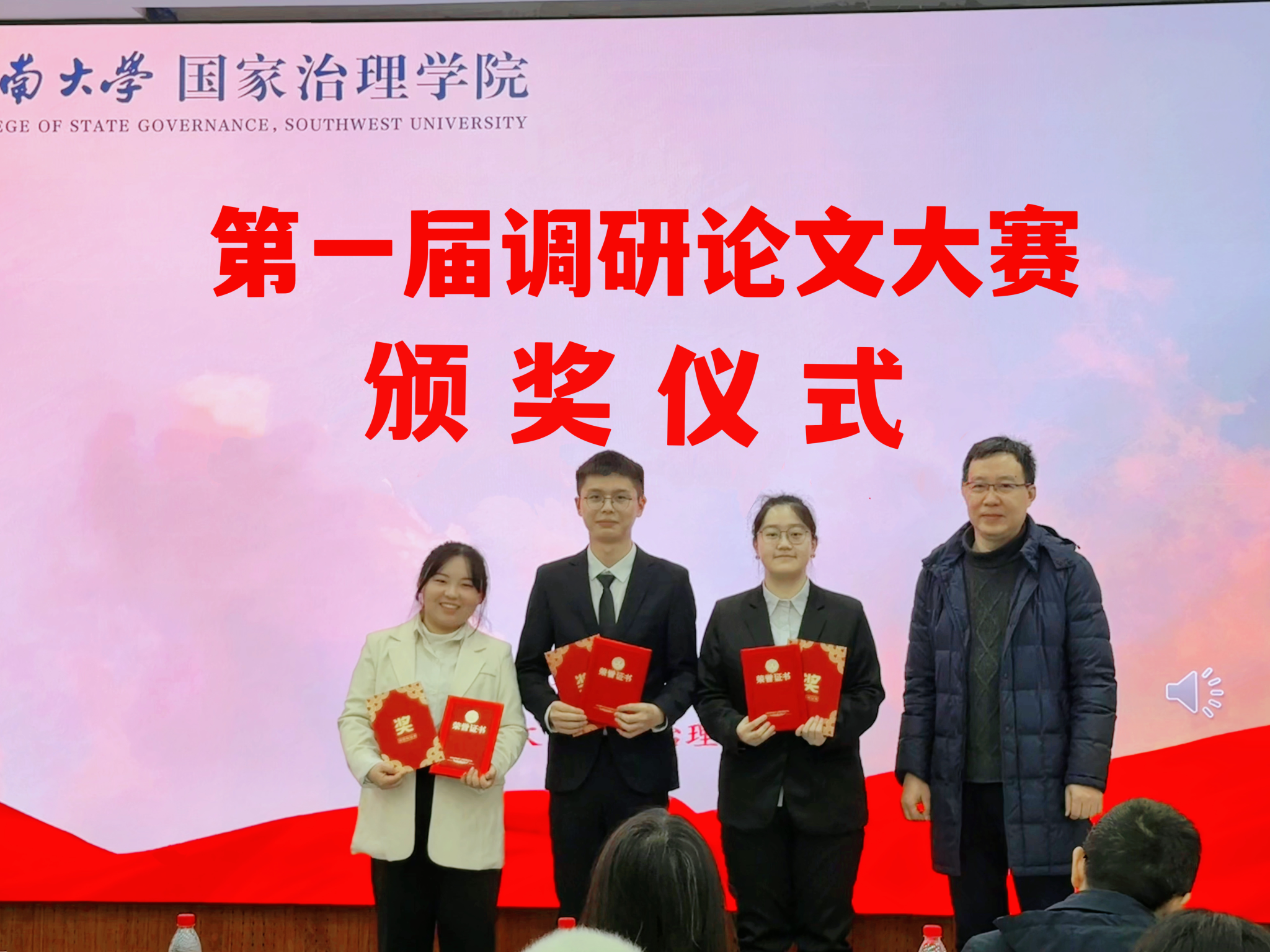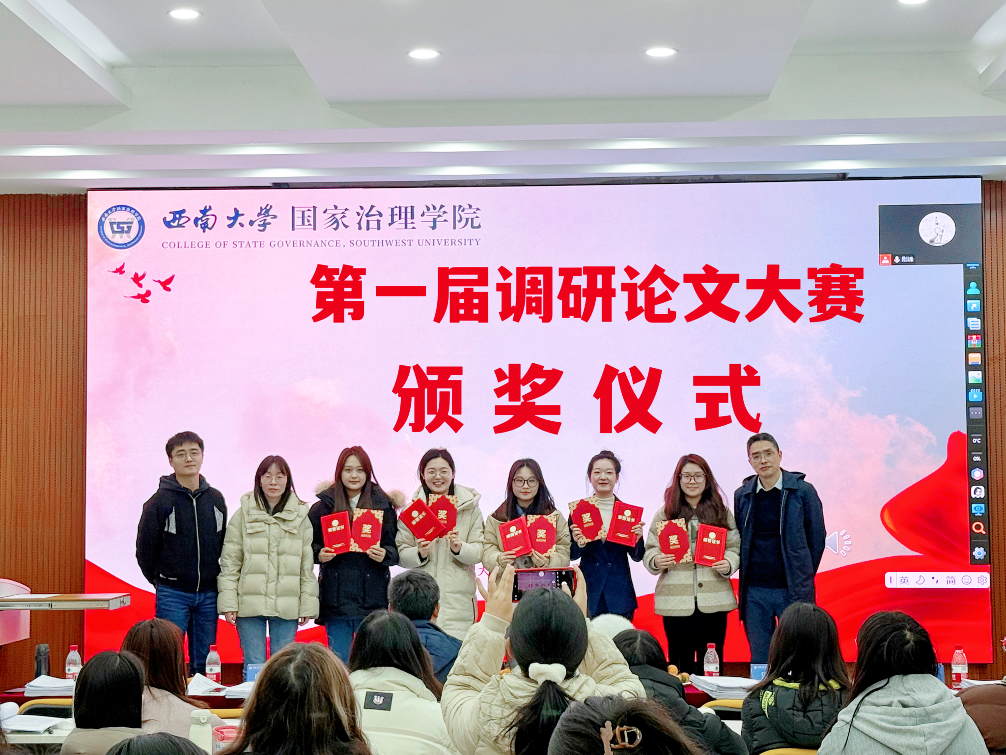 经过评委老师打分,陈丽华宣读了大赛获奖名单,乡村治理小队获得一等奖,旺旺队、银龄破“困”行动队、乡遇队获得二等奖,深藏blue队、我们天生一队、治理舰队、老员工厌学现象调研队、困境儿童需求分层分类调研小组、自成一队获得三等奖。