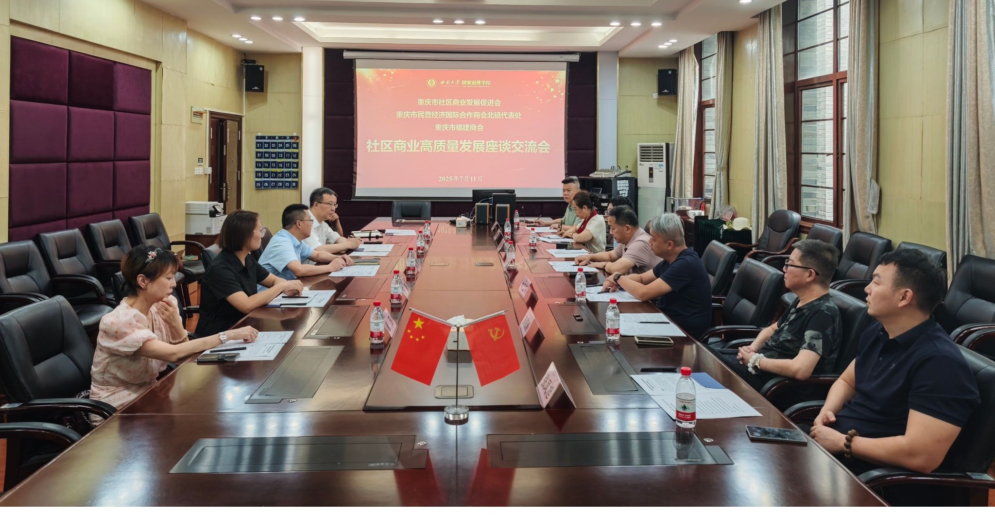 发布时间: 2025-07-11 15:38:03 已阅读:7月11日,“赋能基层治理,推动社区商业高质量发展”交流会在伟德体育顺利举行。重庆市社区商业发展促进会、重庆民营经济国际合作商会北碚代表处、重庆市福建商会等多家单位代表来院交流。各方结合重庆市社区商业发展需求,就校社协同、产教融合、社区人才培养等议题深入交流,达成多项合作共识。