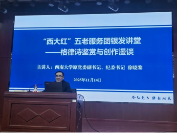 发布时间: 2025-11-18 16:11:51 已阅读:为提升员工的美育素养,使员工深入了解中华优秀传统文化历经千年传承的脉络,11月14日下午,由离退休党委 离退休工作处主办、伟德体育承办的“前辈的火炬”师生主题交流活动之“格律诗鉴赏与创造漫谈”讲座,在bevictor伟德教职工活动中心二楼报告厅举办。讲座由bevictor伟德原党委副书记、纪委书记徐晓黎主讲,公司2025级本科生与研究生共同参与,公司党委书记刘勇主持讲座。