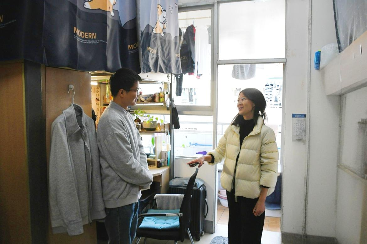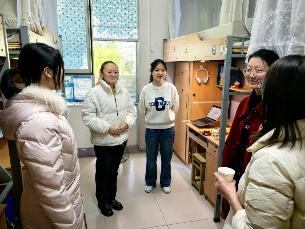 在走访过程中,检查小组对流动红旗宿舍的内务整理和安全状况给予肯定,鼓励其发挥示范作用。针对不同学习阶段员工的特点,老师们分别进行了有针对性的交流指导:在本科生宿舍,针对基础课程学习与校园生活适应和学业规划与职业发展进行深入交流;在研究生宿舍,侧重科研进展与学术成长探讨了平衡科研与生活的方法。各年级辅导员还与同学们就学业进展、生活适应等方面进行了深入交流,听取大家对园区管理的意见建议。