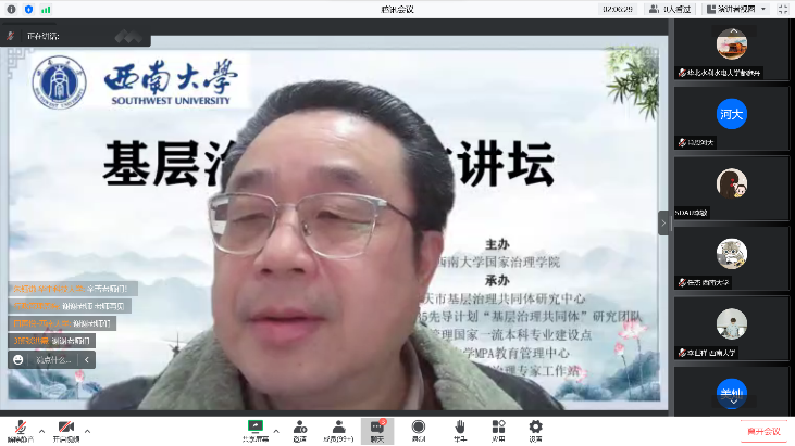发布时间: 2022-12-03 21:50:14 已阅读:2022年12月2日下午,由伟德体育主办,重庆市基层治理共同体研究中心、bevictor伟德2035先导计划“基层治理共同体”研究团队、行政管理国家一流本科专业建设点、bevictor伟德MPA教育管理中心、云南昌宁基层治理专家工作站联合承办的基层治理共同体讲坛顺利举行。