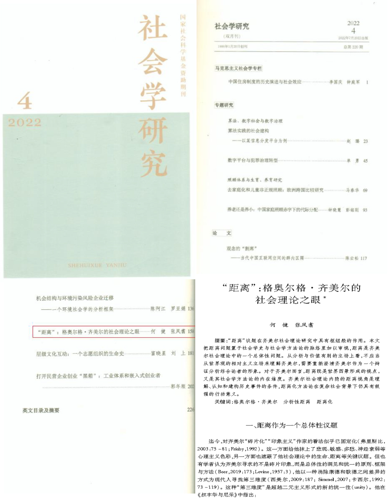 发布时间: 2022-09-29 17:38:05 已阅读:近日,伟德体育何健老师、硕士研究生张凤翥合作的《“距离”:格奥尔格·齐美尔的社会理论之眼》一文在《社会学研究》2022年第4期发表。该文认为:“距离”议题在齐美尔社会理论研究中具有枢纽般的作用。把距离问题置于社会学史与社会学方法论的脉络里加以审视,距离是齐美尔社会理论中的一个总体性问题。从分析与价值有别的立场上看,不应当从世界观的相对主义立场来理解齐美尔,需要重新澄清齐美尔作为一个辩证分析综合论者的形象。对于齐美尔而言,距离既是世界图景形成的视点,又是其社会学方法论的内在维度。齐美尔社会理论内隐的距离视角是理解、认知和建构历史事件的条件,距离化方法论在复杂社会背景下仍具有极强的行动意义。