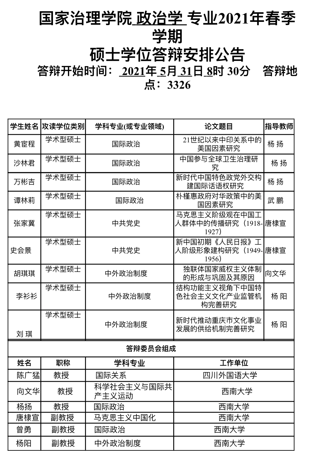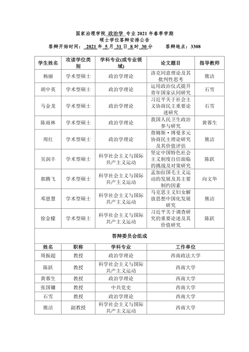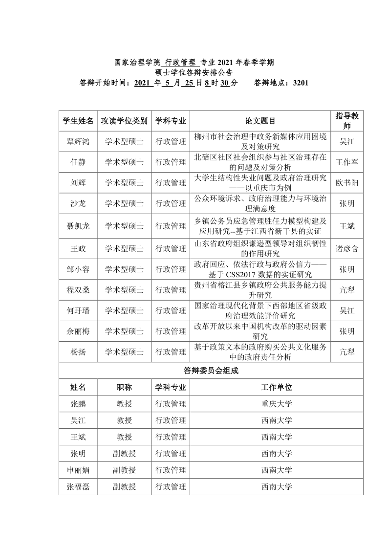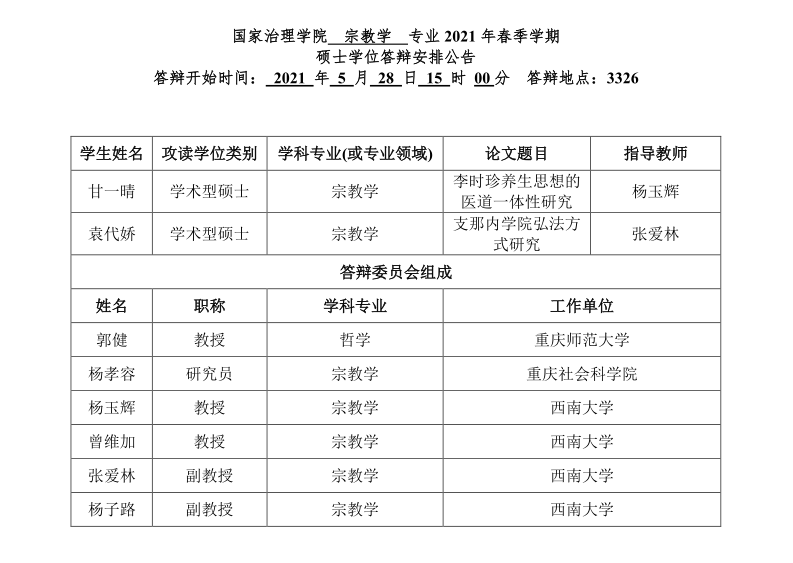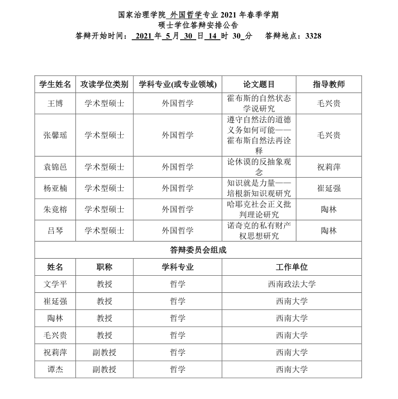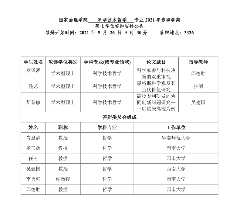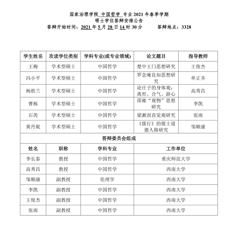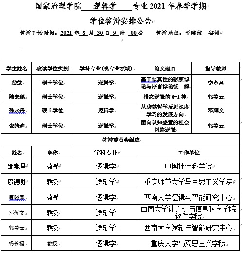 伟德体育 2021年春季学期全日制研究生学位答辩安排公告