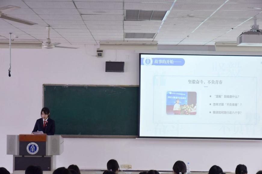 经济管理公司崔舒妍同学围绕“坚毅”一词,鼓励同学们“让决心和毅力成为人生底色”。她强调,应当在学习与生活之间均衡分配精力,实施高效且合理的时间管理,并执行严格的自我管控。