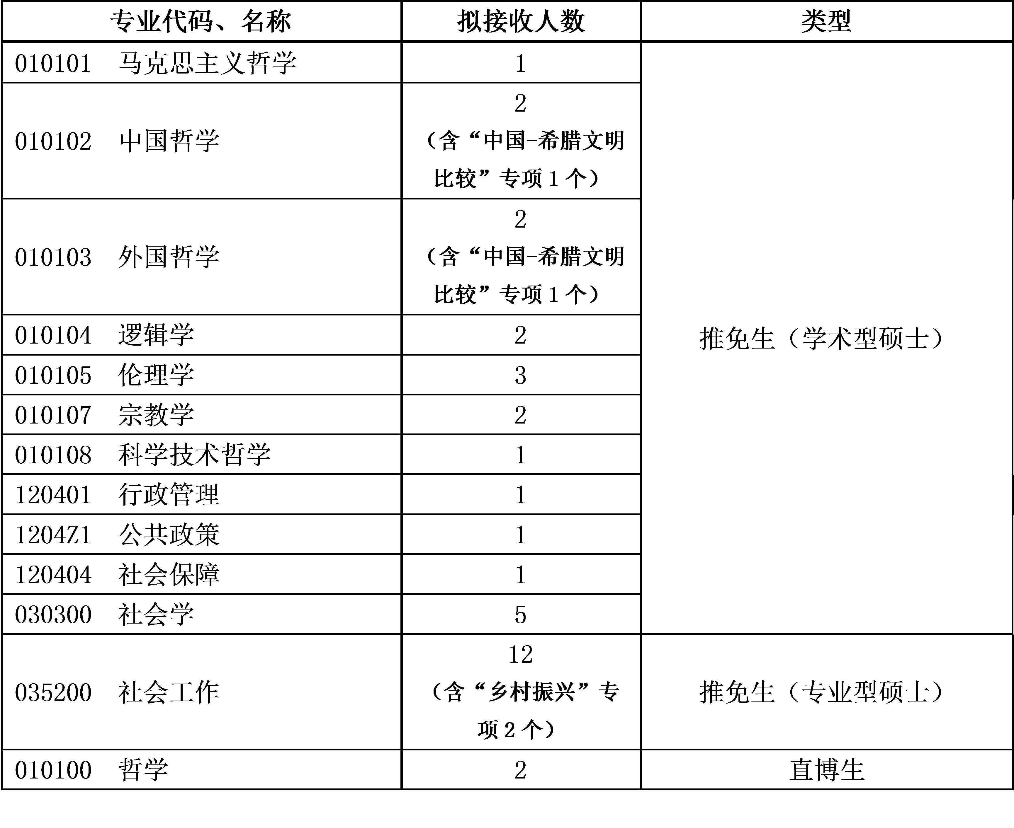 二、接收专业及拟接收人数