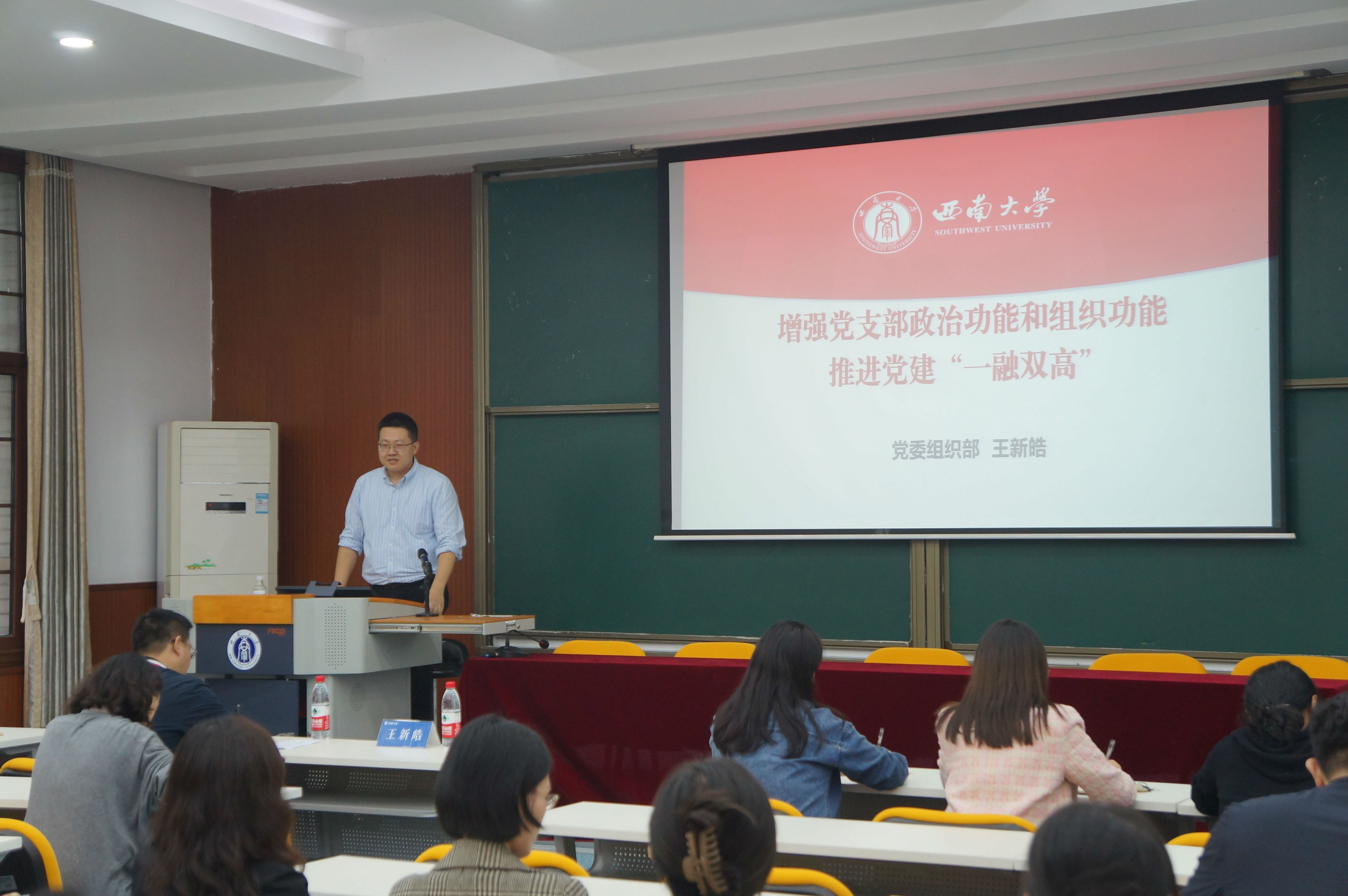 发布时间: 2023-10-23 10:58:03 已阅读:10月20日下午,公司党委在绩镛楼3308会议室召开2023年秋季学期党支部书记例会,邀请公司党委组织部组织科科长王新皓作“增强党支部政治功能和组织功能 推进党建‘一融双高’”专题讲座。公司专职组织员、党支部书记及委员参加会议,会议由公司党委书记刘勇主持。