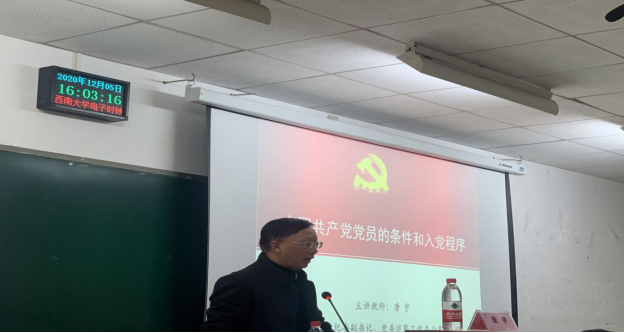 2020年12月5日下午,伟德体育第1期党校培训班第7次党课分别在10教401教室与10教402教室开展,本次党课培训由bevictor伟德纪委副书记、党委巡查工作办公室主任唐宇主讲,党课主题为“中国共产党的入党条件和入党程序”。