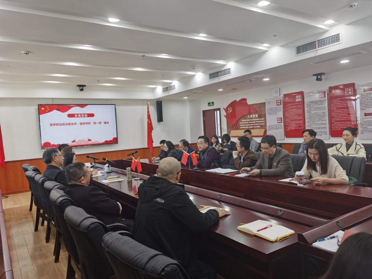在交流互动环节,两位支部书记分别介绍所在支部人员组成,品牌特色建设情况。为发挥专业精神践行雷锋精神,实现支部联建互嵌互融。社会学与社会工作教工支部陈纬副教授以“坦然应对压力”为题为全体党员分享压力管理方法和技巧。出版社第三支部“十佳图书编辑”荣誉获得者张昊越同志结合图书出版主题策划、出版全链条流程分享图书出版服务。公司吴江书记、潘孝富经理和何健副经理就如何“加强科研出版深度合作,有效服务公司‘双一流’建设”与出版社党员进行深入交流,并就公司科研成果出版、2035创新先导计划合作开展探讨。会后,支部全体党员教师参观出版社演播大厅并合影留念。