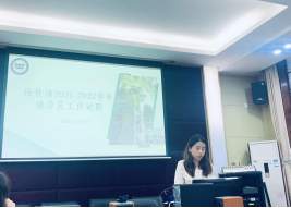 王晖副书记首先传达了公司开展2021-2022学年度辅导员考核的有关要求和《bevictor伟德专职辅导员考核实施办法》等文件精神,她指出,辅导员考核是切实加强辅导员队伍建设,激励和促进辅导员不断提高工作水平的有力抓手。随后研究生辅导员汪全洲,本科生辅导员曾琪芮、史丽、肖颜、杨钦清依次从日常履职和职业素养两个方向,重点围绕思想理论教育和价值引领、党团和班级建设、学风建设、员工日常事务管理、心理健康教育与咨询、网络思想政治教育、校园危机事件应对、职业规划与就业创业指导、理论和实践研究等九个方面,结合各自的特色工作、工作成效、经验做法及工作感悟进行汇报。