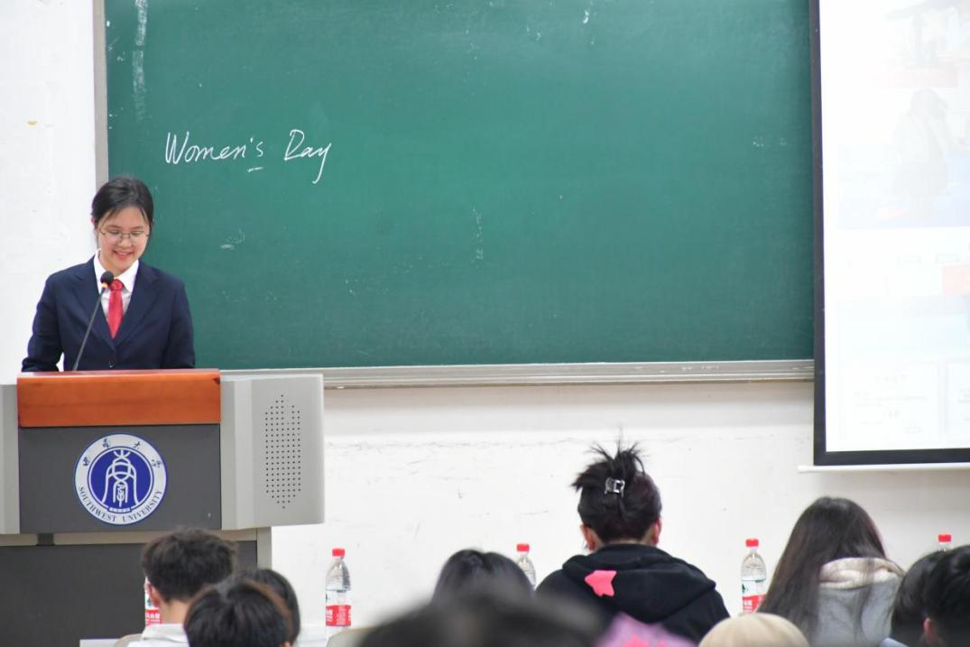 发布时间: 2024-03-14 16:53:26 已阅读:为了激励广大学子积极向学、奋发有为,向优秀的榜样学习,公司于3月11日在10教301举办了“与榜样同行”员工标兵先进事迹巡讲会,2023级全体本科生及辅导员史丽参加。