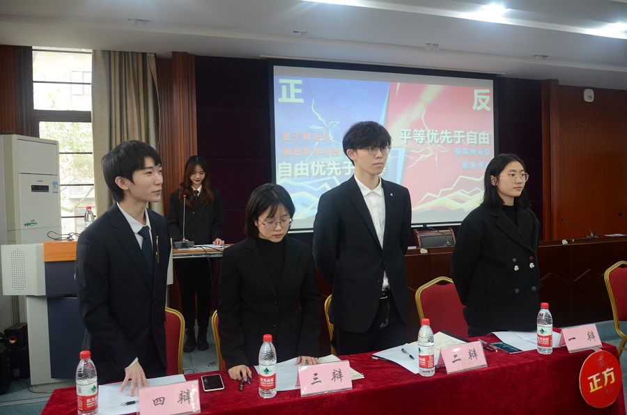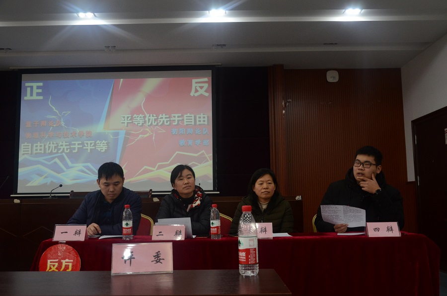 辩论赛不仅可以锻炼员工的思维、语言表达、团队协作等能力,还可以营造良好的学习氛围。“哲学月ž爱智杯”系列辩论赛始终致力于为全校师生提供一个展现辩论才能的平台,推进哲学走进生活、走进大众的进程,让更多的同学乐于了解、学习哲学。12月17日下午,“哲学月ž爱智杯辩论赛决赛于3教3326教室正式举行。公司物理科学与技术公司量子辩论队持正方观点“自由优先于平等”与持反方观点“平等优先于自由”的教育学部初阳辩论队进行了激烈论战。