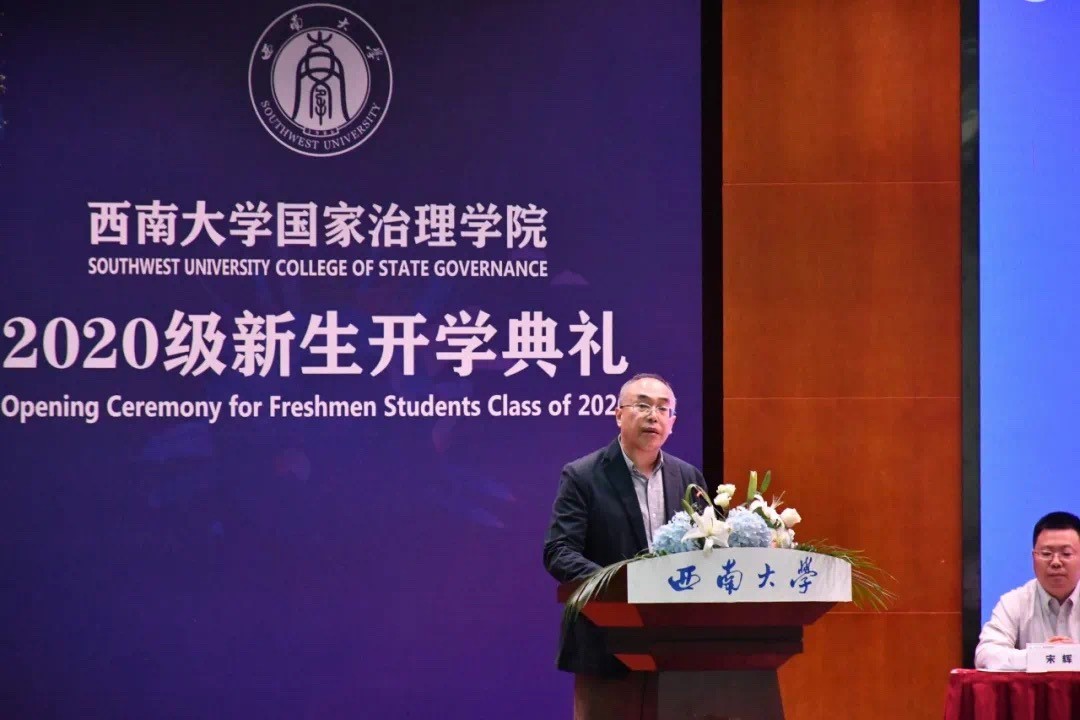 公司党委书记李旭锋教授在开学典礼上做重要讲话。李书记向新同学表达了热烈的欢迎,并详细阐述了伟德体育成立的重大意义与使命所在,向全体新生提出了三点期望:第一,心系家国,厚植善治情怀。希望同学们厚植家国情怀,胸怀国家治理的远大理想,将个人发展植根于伟大的时代,牢记“特立西南,学行天下”的大学精神,用责任心和使命感去体会学习的意义、知识的力量和奉献的价值,为推进国家治理水平现代化砥砺前行。第二,勤学博采,锤炼善治本领。希望同学们能保持求知若渴的学习态度,沉心静气,埋头苦学,熟练掌握专业知识,练就专业技能;广泛涉猎,博采众长,建构丰富的“知识库”,练就发现问题、探索问题、解决问题的能力。第三,笃行致远,追逐善治理想。希望同学们结合时代的新特点和新要求,聚焦全球治理、国家治理、社会治理、城市治理和环境治理等现实问题,直面治理实践中的新场景、新领域、新现象,坚持理论联系实际,广泛关注社会现实,积极参与社会实践,以知促行、以行求知,把学问做在广阔的社会天地里,把论文写在广袤的祖国大地上。