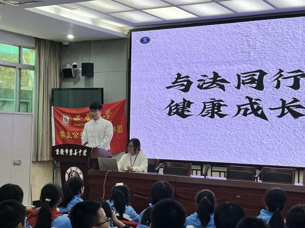宣讲员王竞辉作了“与法同行,健康成长”的主题宣讲,从法律的视角出发,向同学们普及了与校园霸凌相关的法律法规。宣讲员翟晨宇则以“反对校园霸凌,共创和谐校园”为主题进行宣讲,从校园霸凌的多个角度去分析原因,并为同学们提出了有效建议。