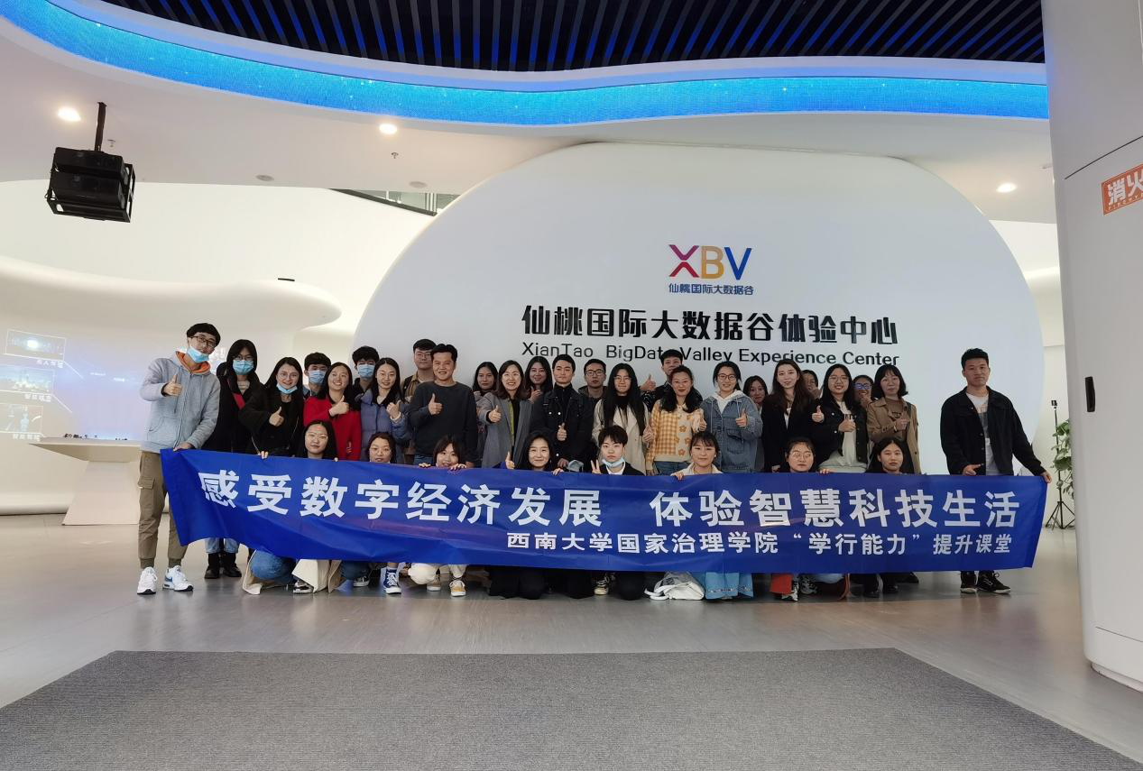 此次参观学习的主题是“感受数字经济发展,体验智慧科技生活”。坐落于重庆渝北悦来国际商务区的仙桃国际大数据谷处处都能让人感受到数字经济产业发展的蓬勃气息,这里正是提升课堂的第一站。作为国家数字经济示范区的先行者,仙桃国际大数据谷深入贯彻“实施国家大数据战略加快建设数字中国”的重大部署,围绕数据链价值发展规律,布局“1+3+5+10+N”创新生态体系。通过讲解员的细致解说,师生在沉浸式体验中感受科技的震撼,领略大数据智能化的前沿技术,接触可爱的法律咨询机器人及无人驾驶示范项目。在大数据谷,科技之风扑面而来,给师生留下深刻印象的不仅是一项项最新的发明专利,更是国家创新能力增强的时代掠影。