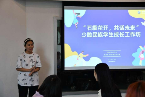 发布时间: 2023-05-24 09:25:13 已阅读:为深入贯彻落实中央民族工作会议精神,铸牢中华民族共同体意识,深化民族团结进步教育,助推少数民族员工更好地成长成才,公司于5月19日下午在17教3301生活艺术室开展“石榴花开,共话未来”少数民族员工成长工作坊,公司党委副书记王晖老师、2022级辅导员曾琪芮老师、高年级少数民族员工代表和2022级少数民族员工参加本次活动,工作坊由2022级辅导员曾琪芮主持。