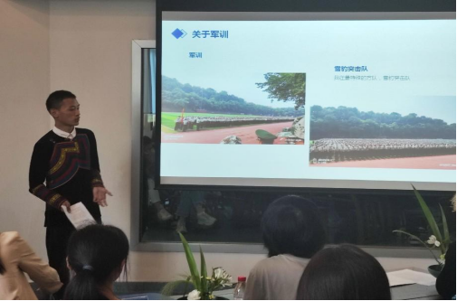 首先,来自彝族、哈萨克族、维吾尔族、壮族、傣族、苗族、瑶族等少数民族同学们依次上台用生动活泼又富有民族特色的方式做自我介绍,向与会师生分享了民族习俗、家乡特色、入学感受和成长经历等方面:来自彝族员工代表杨军和沙库阿前表演了彝族祝酒歌;来自维吾尔族员工代表古丽孜巴·艾麦尔向大家展示了一段新疆维吾尔语;来自彝族员工代表李佳杰表演了一段说唱,让活动的气氛达到了高潮,所有与会人员都沉浸在轻松愉悦的氛围中。