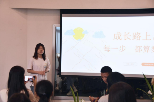 来自2019级公共关系学专业的苗族员工代表向敏以《成长路上,每一步都算数》为主题,从个人介绍、学习竞赛、员工工作、经验总结四个方面来分享了她的求学经历,她鼓励同学们要勇于抓住机遇、迎接挑战、主动出击,要多和高能量磁场的人相处,不要透支对未来的焦虑,享受有意义的老员工活。