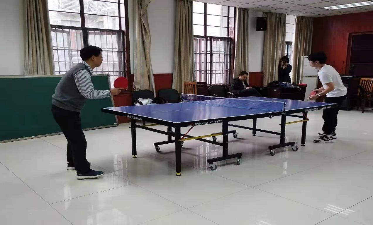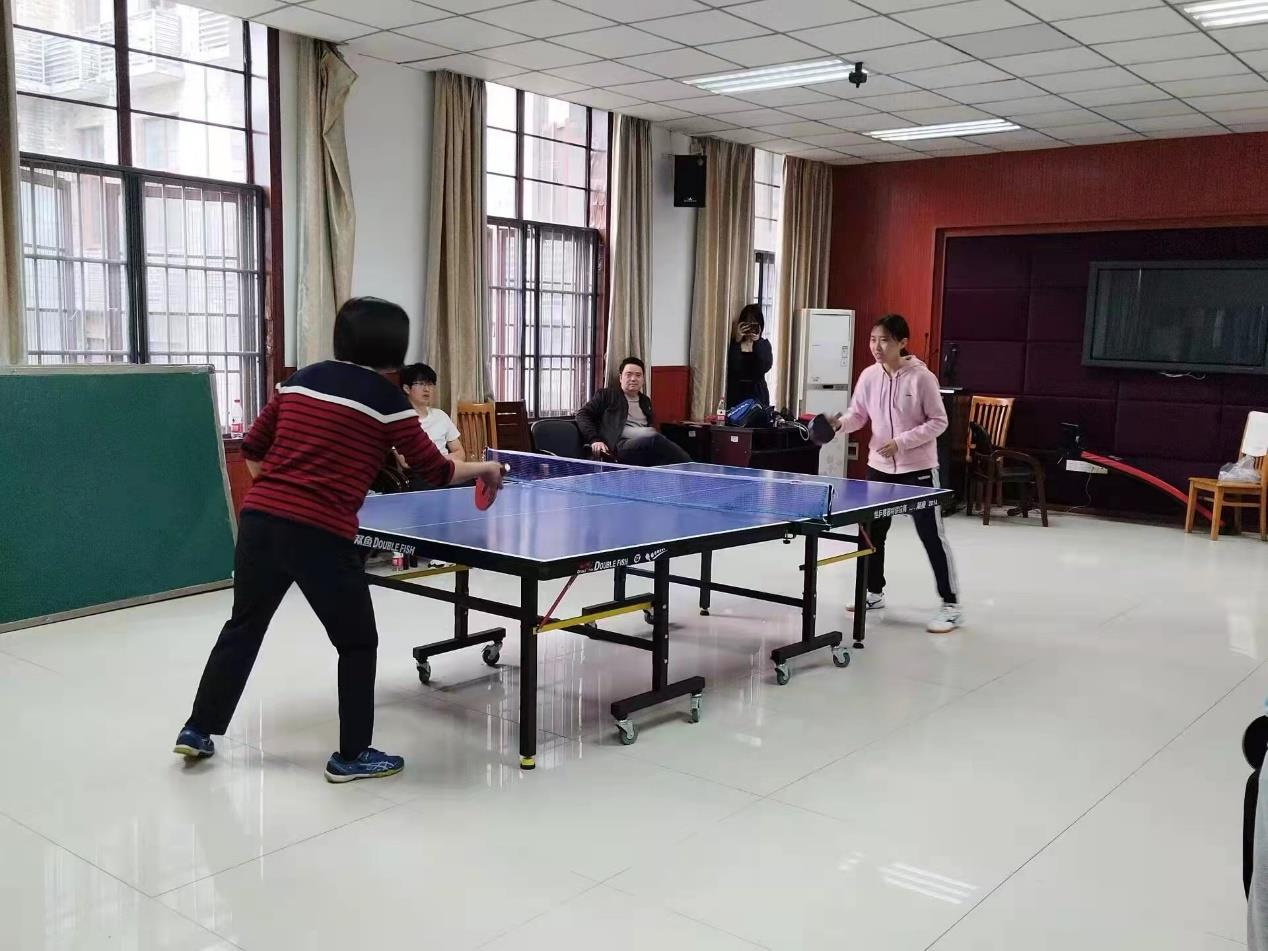 首先进行的是男子单打比赛,老师与员工进行了激烈的“切磋”,现场的气氛十分的活跃,老师和员工们都以饱满的热情和高度的积极性全身心的投入到比赛回合中,乒乓球在空中来回划出了一道优美的弧线,博得了一阵又一阵的喝彩声,比赛精彩迭出。