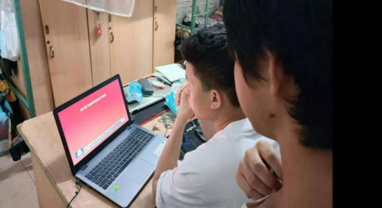 公司共青团员在寝室里学习“五四”主题云团课