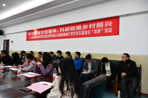 发布时间: 2021-10-31 15:31:58 已阅读:为深入学习贯彻习近平总书记在全国脱贫攻坚总结表彰大会上的重要讲话精神,3月12日下午,公司公管系教工党支部同社科处党支部在公司3328会议室开展了“学习脱贫攻坚精神 科研助推乡村振兴”主题党日“共学”活动。