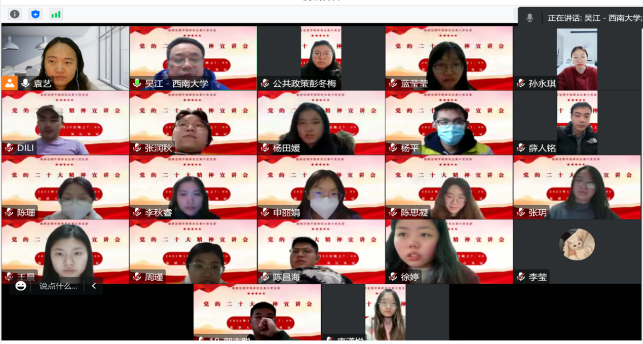 公司党委书记吴江教授为研究生第六党支部宣讲党的二十大精神