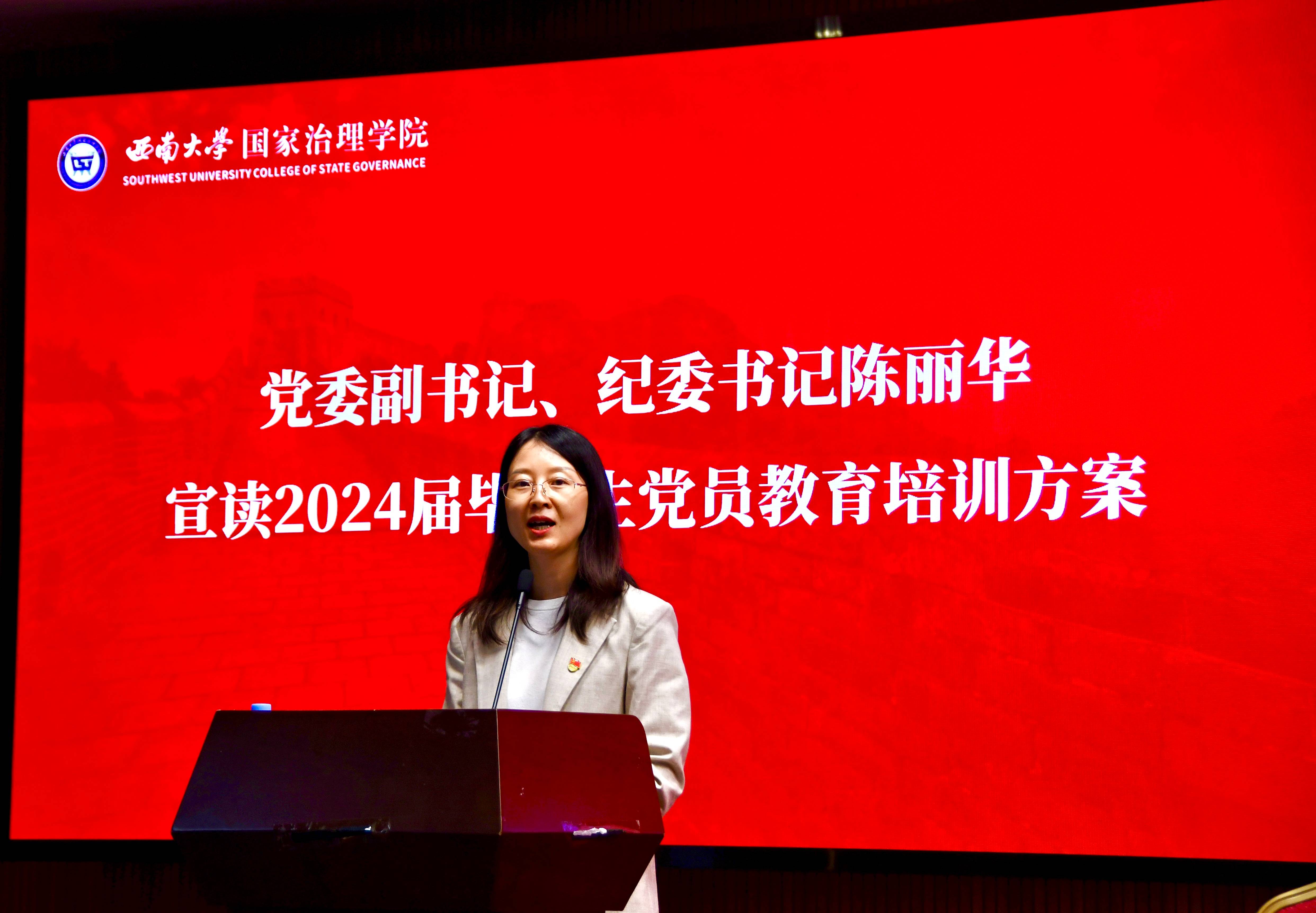 陈丽华宣读2024届毕业生党员教育培训方案,号召毕业生党员高度重视此次教育培训活动,增强组织观念和纪律意识,时刻牢记党员身份,在文明离校过程中和走向社会后,充分发挥党员先锋模范作用。